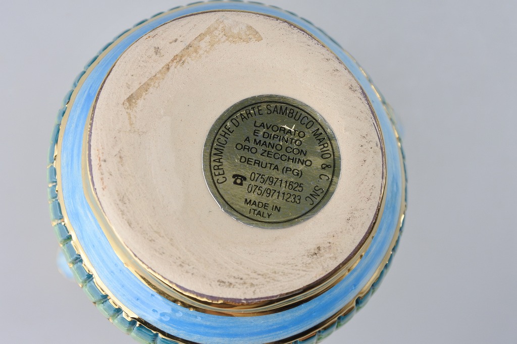 1950年代末、マリオ・サンブーコが、イタリアのウンブリア州デルトゥータの伝統的な技術を受け継ぎ、独自のセラミック工房「Ceramiche Sambuco Mario」を設立しました。1980年代には息子たちルチオとルカが参加し、伝統の中にもデザインや素材(特に金・白金・銀)による新たな表現を模索しました。