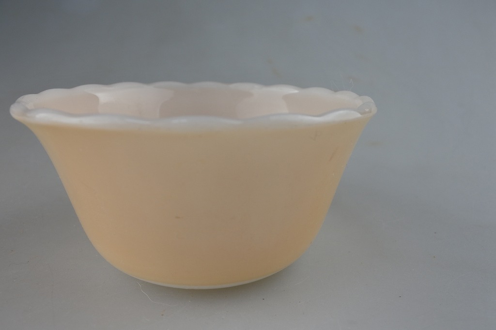 アンカーホッキング社というアメリカのガラス会社が1940年代〜70年代に製造された食器のブランド。大衆向けに製造されていたことから厚みのある丈夫な作りが多い。ミルクガラスの柔らかい色合いが特徴です。