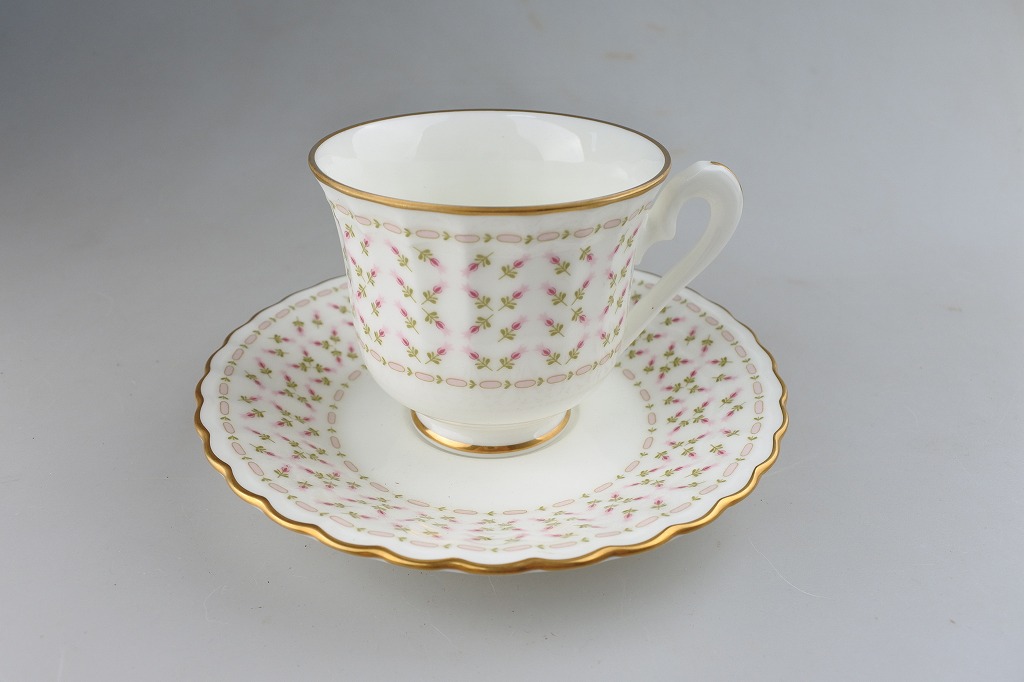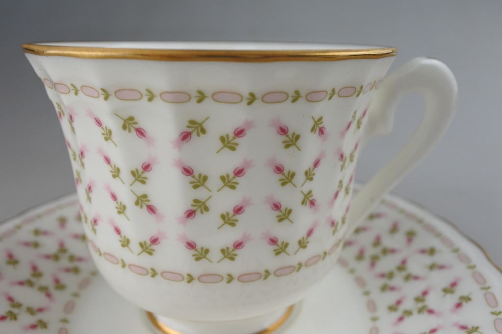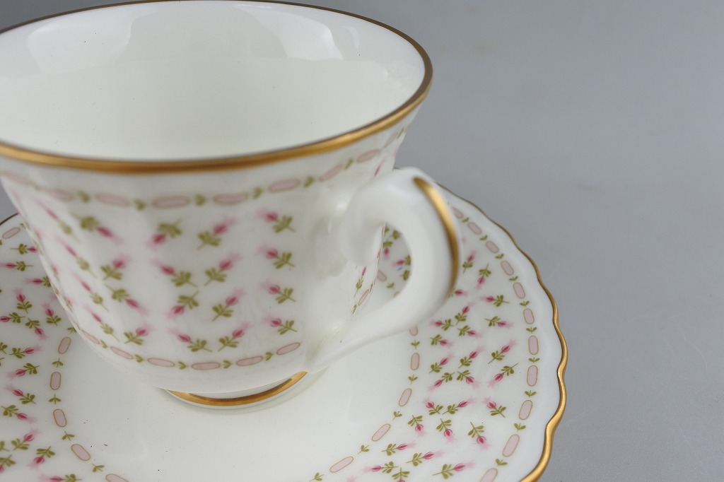 日本国内流通用に1973年頃製造していたノリタケのスタジオコレクションシリーズより、ピンクの小花が並んでいる小さめのカップ&ソーサーです。